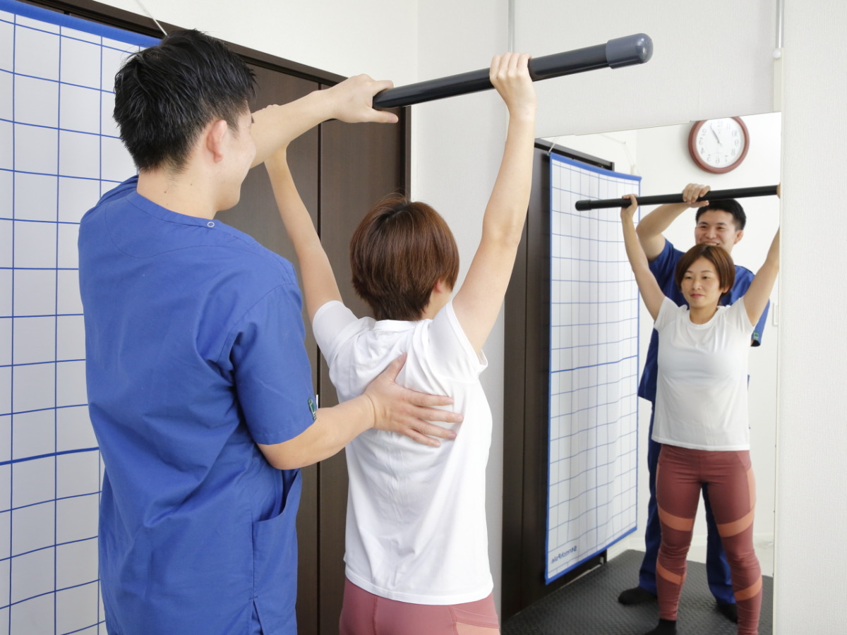 肩や股関節が動きやすい格好であればお着替えの手間なく施術が可能です。