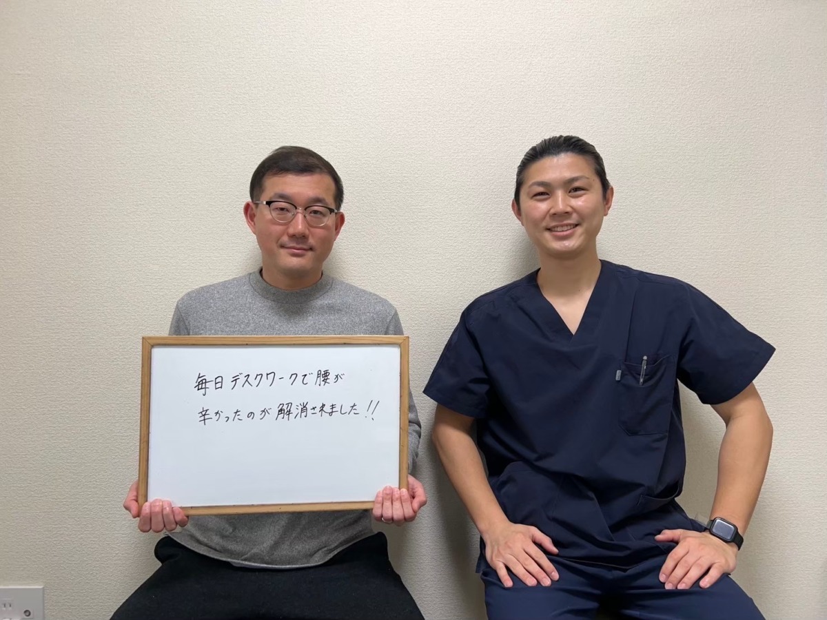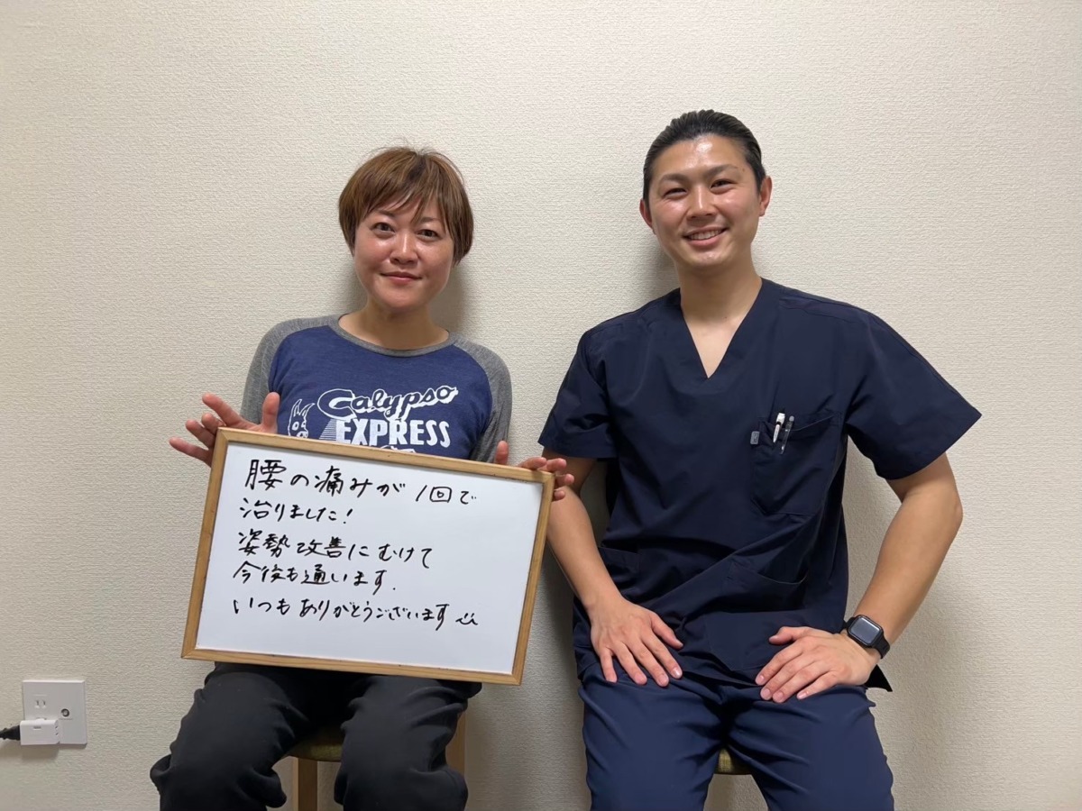 初回の施術で変化を実感していただき、少しずつ症状が軽減していき、今では日常生活に支障が出ないぐらい腰痛が改善されました。