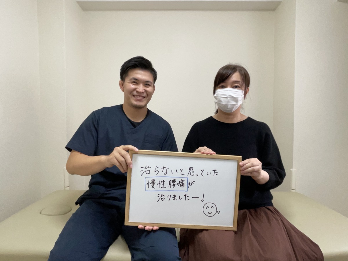 初回の施術で少し変化を実感していただき、そこから繰り返し施術と当院独自のセルフケアを実践していただいた結果、今では慢性的な腰痛も無くなり、足の痺れもほぼ出現することが無くなりました。