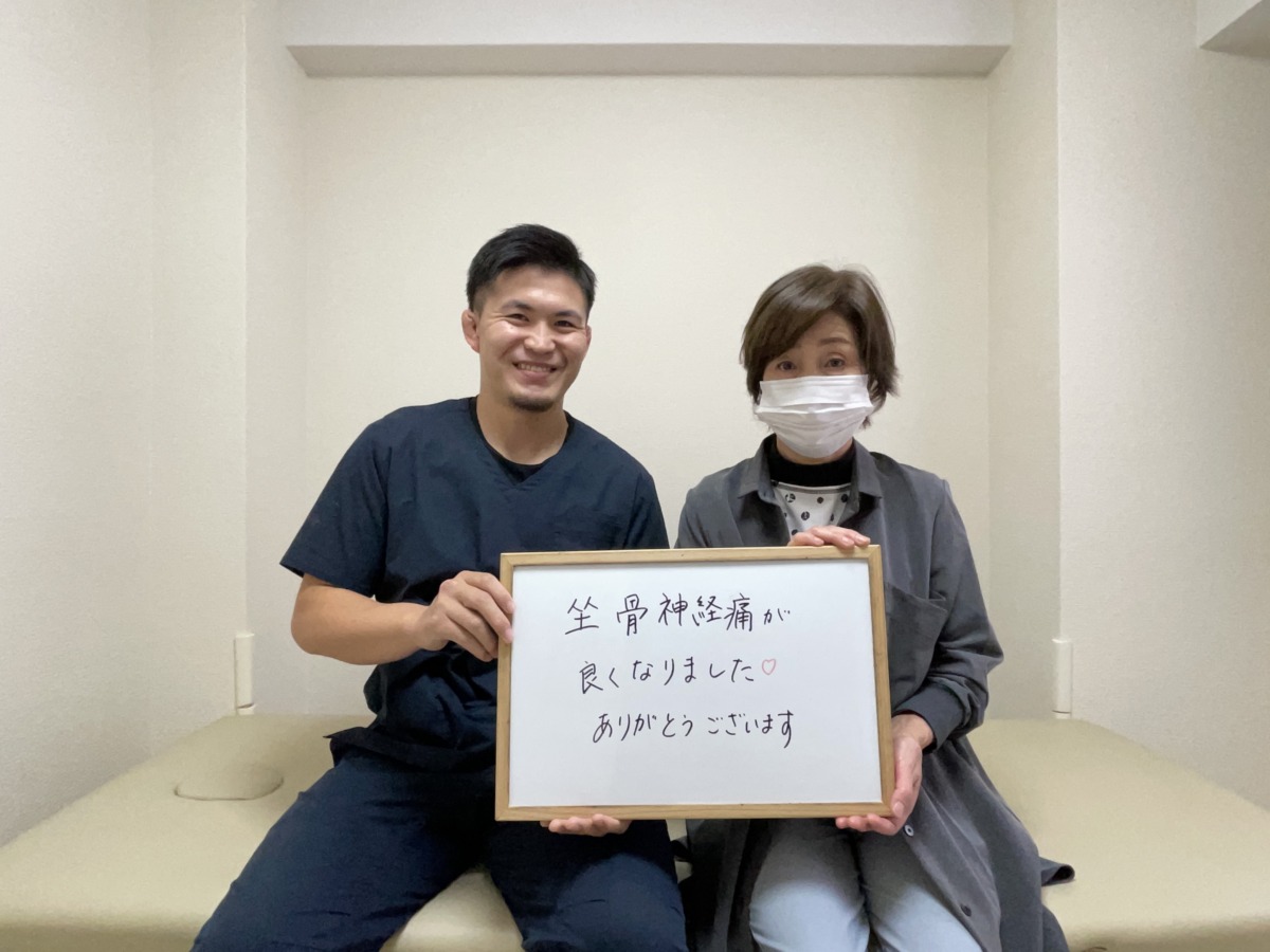 施術を開始して最初は劇的な変化は出なかったものの、当院の施術、セルフケアを実践していき、少しずつ症状が治まり、3ヶ月後には腰痛、坐骨神経痛の症状がかなり軽減しお仕事への支障も無くなり、日常生活も普通に送れるようになりました。
