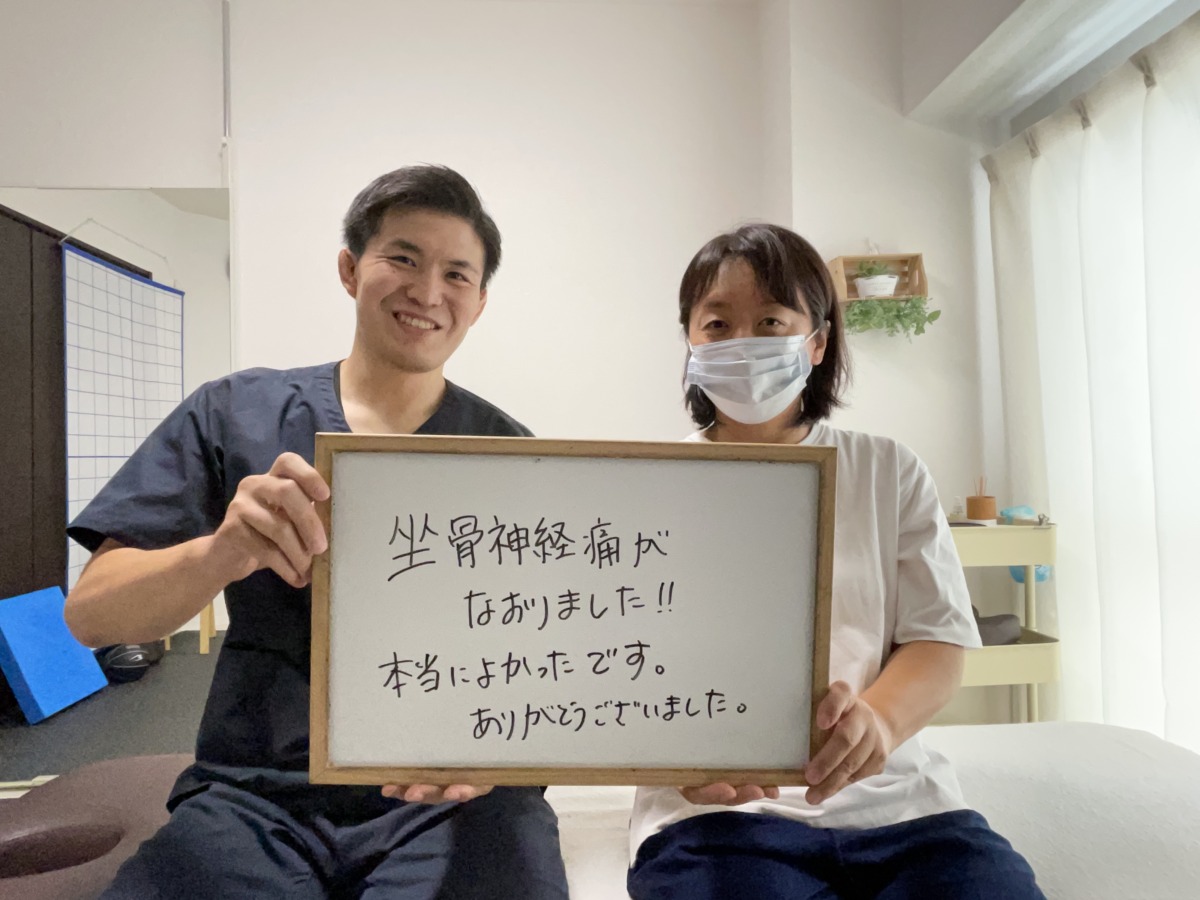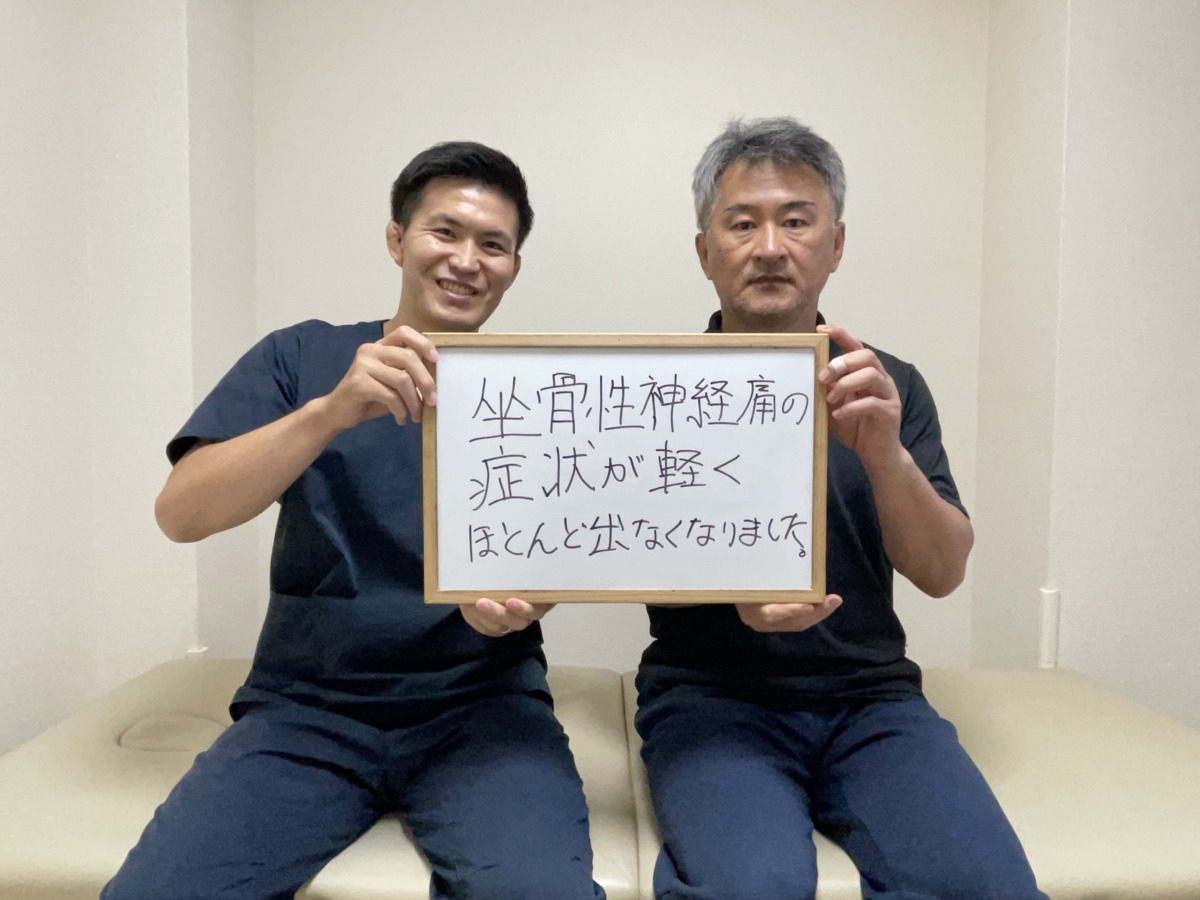 初回の施術で少し変化を実感していただき、少しずつ症状が軽減していき、今では坐骨神経痛の痺れを感じないぐらい改善しました。